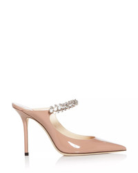 Bing 100 Ballet Pink Patent Leather Mules with Crystal Strap