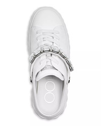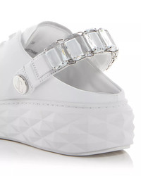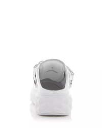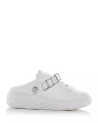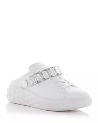 Diamond Maxi Crystal White Nappa Leather Slipper Trainers with Crystal Strap