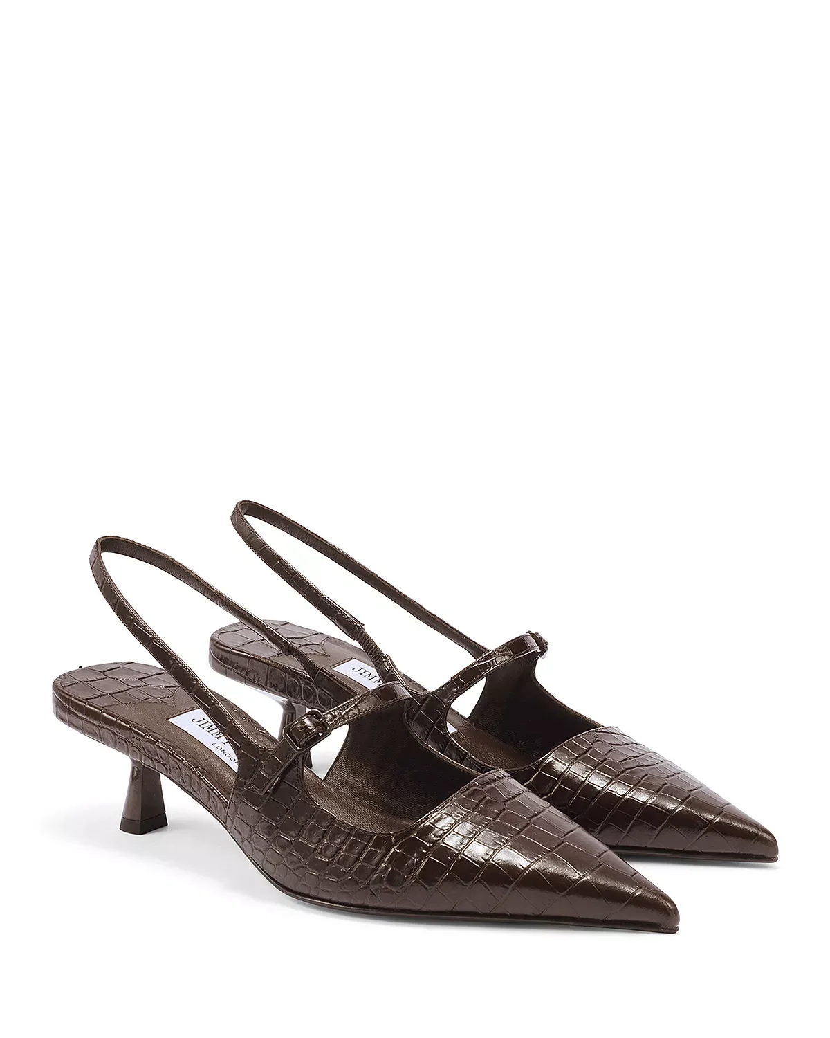 SIZE & FIT - Established in 1996, Jimmy Choo is a global luxury accessories brand. Celebrated for its confident style and craftmanship, the house is synonymous with design expertise and the art of celebrity dressing. - Headquartered in London and helmed by creative director Sandra Choi, the brand is a global powerhouse defined by glamour, optimism and joy. PRODUCT DETAILS - Runs small, order a half up - Pointed toe - Adjustable buckle upper - Elastic gores at slingback strap - 1.77" heel - Leather upper, lining, and sole - Made in Italy Web ID: 5532654