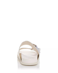 SIZE & FIT - Founded in 1996, Jimmy Choo creates luxury handbags, shoes, accessories, and fragrances with an empowered sense of glamour and a playfully daring spirit. - Seamlessly blending innovative with time-honored techniques, Jimmy Choo is known as much for its exceptional craftsmanship as it is for its confident style, making the brand a favorite among celebrities and A-listers in every corner of the globe. - Together, CEO Hannah Colman and Creative Director Sandra Choi have built a global powerhouse rooted in glamour, optimism, and joy. - And it is with this in mind that the brand created Project Optimism--a sustainability manifesto that will help guide Jimmy Choo toward developing more sustainable products with the same joie de vivre the brand has become synonymous with. PRODUCT DETAILS - Runs small, order a half size up - Double grip-tape closure for an adjustable fit - Molded footbed for added comfort - Open toe - Faux pearl embellishment with logo hardware at straps - Leather and synthetic upper, leather lining, rubber sole - Made in Spain Web ID: 4737626