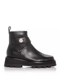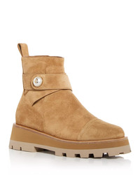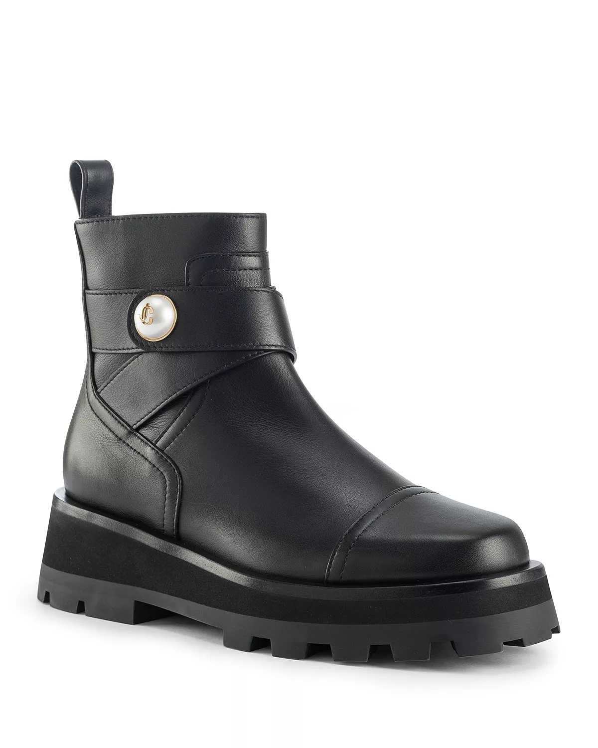 SIZE & FIT - Founded in 1996, Jimmy Choo creates luxury handbags, shoes, accessories, and fragrances with an empowered sense of glamour and a playfully daring spirit. - Seamlessly blending innovative with time-honored techniques, Jimmy Choo is known as much for its exceptional craftsmanship as it is for its confident style, making the brand a favorite among celebrities and A-listers in every corner of the globe. - Together, CEO Hannah Colman and Creative Director Sandra Choi have built a global powerhouse rooted in glamour, optimism, and joy. - And it is with this in mind that the brand created Project Optimism--a sustainability manifesto that will help guide Jimmy Choo toward developing more sustainable products with the same joie de vivre the brand has become synonymous with. PRODUCT DETAILS - Runs small, order the next size up - Round toe - Functional inside zip - Logo engraved imitation pearl with wrap around strap detail - Pull tab at shaft - 2" stacked heel - Suede or leather upper - Leather lining, rubber sole - Made in Italy Web ID: 5203844