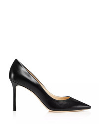 Romy 85 Black Kid Leather Pointy Toe Pumps