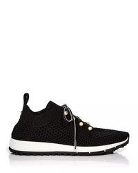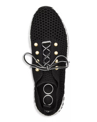 Veles Black Crochet Knit Low-Top Trainers with Pearls