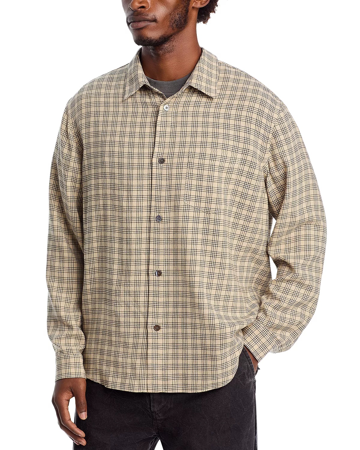 Men's Check Viscose and Wool Pocket Button-Down Shirt