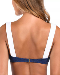 SIZE & FIT - Swimwear sizing fits smaller than apparel sizing, order one size up for more coverage - Model measurements: 5'10" height, 33" bust, 25" waist, 35" hips, wearing a size small PRODUCT DETAILS - Sweetheart neck - Adjustable straps - Back hook closures - Underwire cups - Gold-tone logo buttons, color-blocked design - Lined - Imported Web ID: 5300399 MATERIAL & CARE - Shell: 80% nylon/20% elastane; lining: 87% nylon/13% elastane - Hand wash