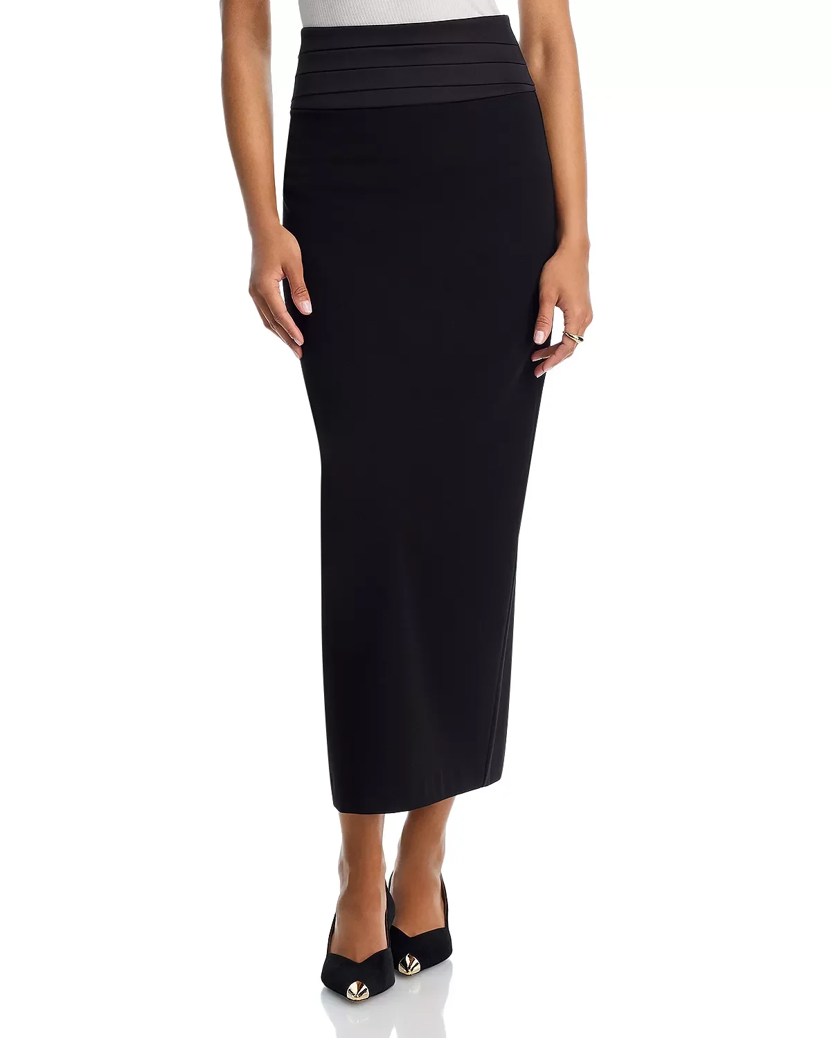 SIZE & FIT - Fits true to size, order your normal size PRODUCT DETAILS - Cummerbund pleated waistband - Concealed zipper closure at center back - Slit at center back hemline - Lined - Imported Web ID: 5766259 MATERIAL & CARE - 68% polyester/29% rayon/3% spandex; contrast & lining: 100% polyester - Dry clean