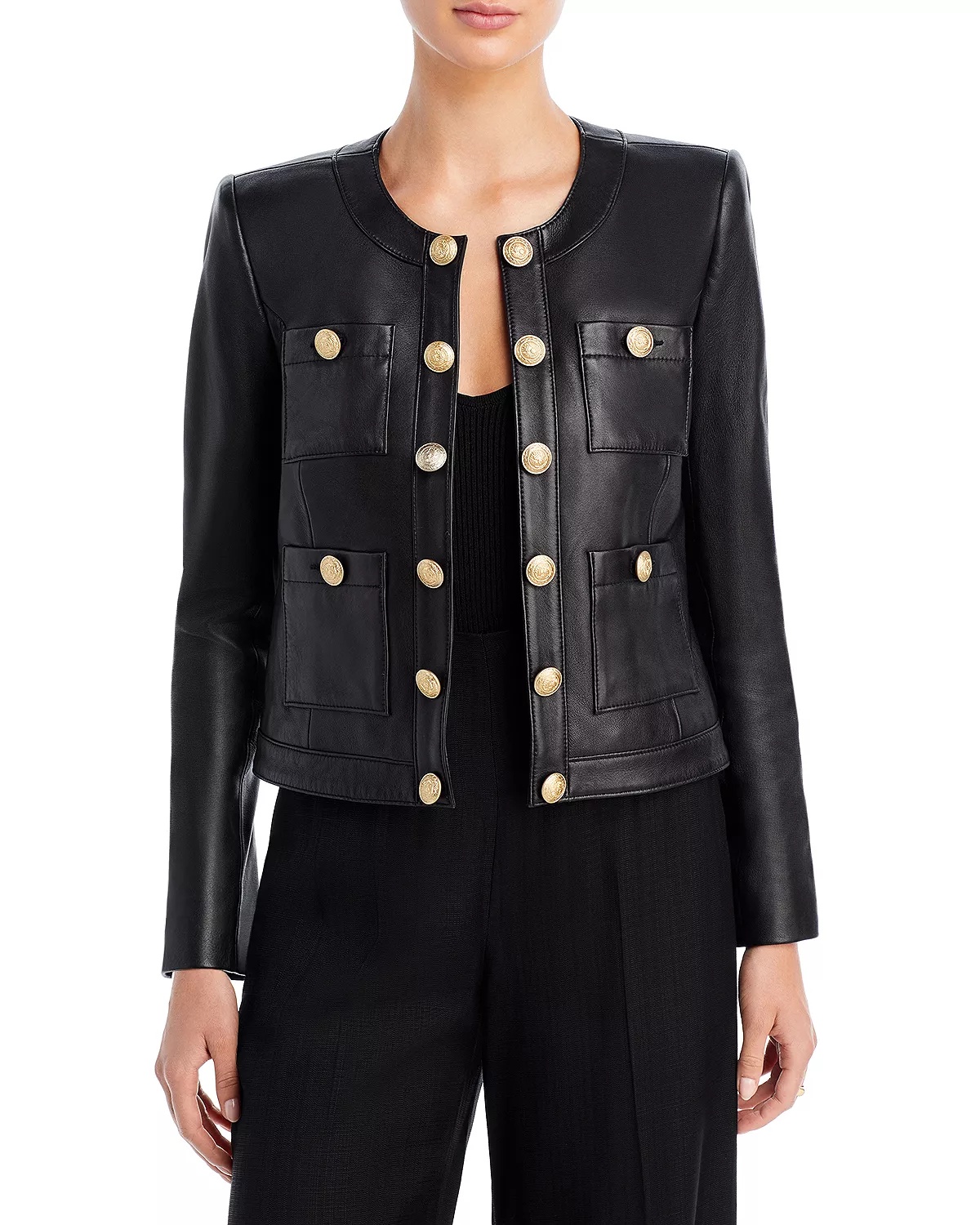 SIZE & FIT - Fits true to size, order your normal size - Model measurements: 5'10" height, 33.5" bust, 23.5" waist, 34.5" hips, wearing a size 2 PRODUCT DETAILS - Collarless - Open front, no closure - Long sleeves - Four patch pockets at front - Gold-tone buttons at placket and pockets - Made in Italy Web ID: 4813530