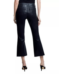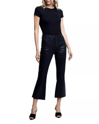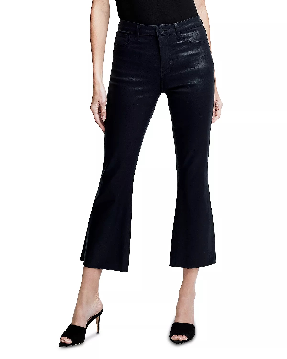 SIZE & FIT - Fits true to size, order your normal size - High rise: 9.5" - Cropped inseam: 26" - Leg opening: 18" - All measurements based on a size 26 - Model measurements: 5'10" height, 33.5" bust, 23.5" waist, 34.5" hips, wearing a size 26 PRODUCT DETAILS - Button fly closure, five-pocket silhouette - Tonal stitching, tonal hardware, belt loops - Cropped flared leg - Raw hems - Made in USA Web ID: 4141309 MATERIAL & CARE - 86% cotton/11% elastane/3% spandex - Dry clean