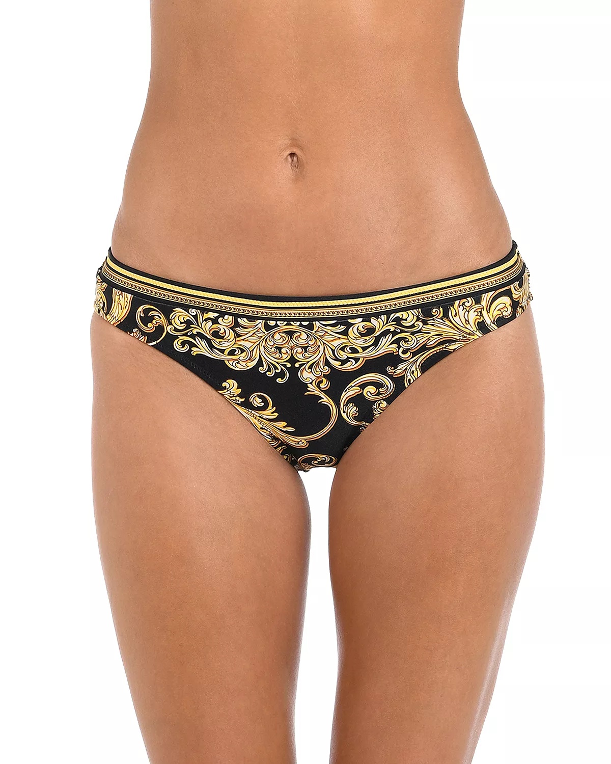SIZE & FIT - Swimwear sizing fits smaller than apparel sizing, order one size up for more coverage - Model measurements: 5'10" height, 33" bust, 25" waist, 35" hips, wearing a size small PRODUCT DETAILS - Pull-on style - Moderate bottom coverage - Baroque print - Lined - Imported Web ID: 5300394 MATERIAL & CARE - Shell: 80% nylon/20% elastane; lining: 87% nylon/13% elastane - Hand wash