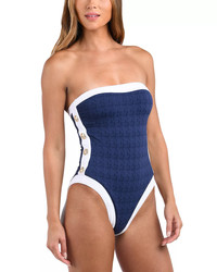 SIZE & FIT - Swimwear sizing fits smaller than apparel sizing, order one size up for more coverage - Model measurements: 5'10" height, 33" bust, 25" waist, 35" hips, wearing a size small PRODUCT DETAILS - Bandeau neck - Adjustable, removable straps - Pull-on style - Removable cups - Moderate bottom coverage - Color-blocked design, gold-tone logo buttons - Power lining for a smooth shaping effect - Imported Web ID: 5300396 MATERIAL & CARE - Shell: 80% nylon/20% elastane; lining: 87% nylon/13% elastane - Hand wash