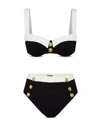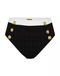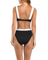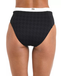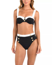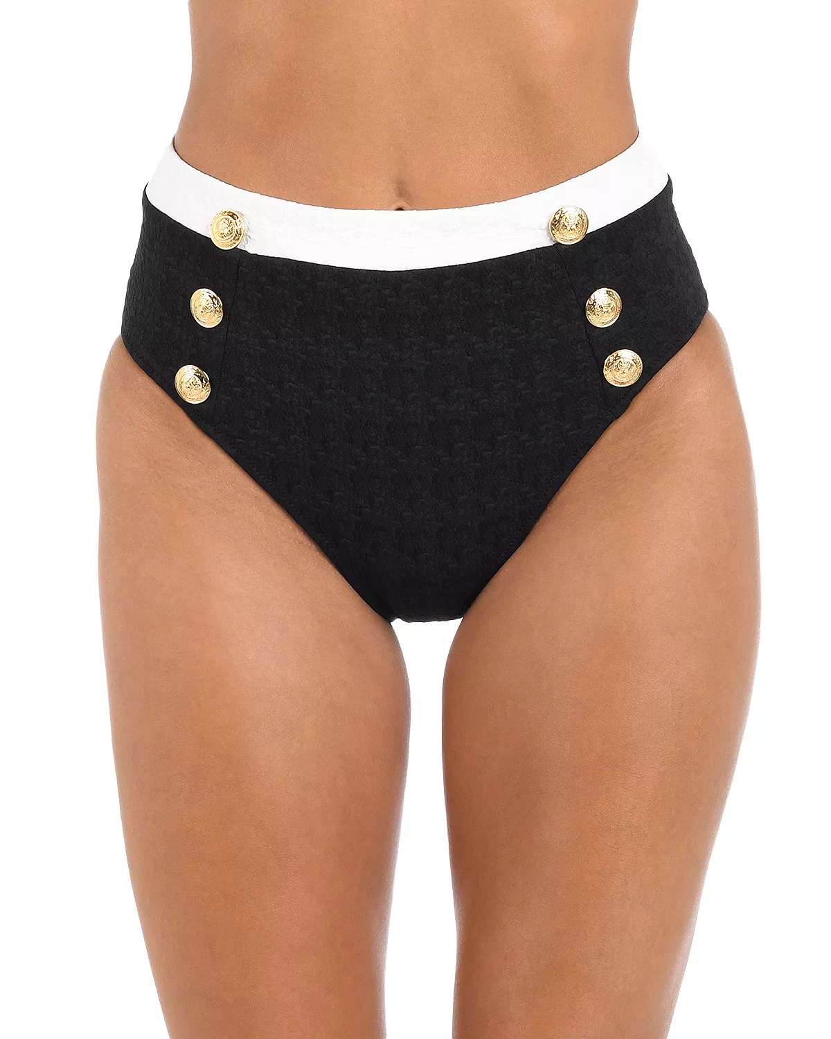 SIZE & FIT - Swimwear sizing fits smaller than apparel sizing, order one size up for more coverage - Model measurements: 5'10" height, 33" bust, 25" waist, 35" hips, wearing a size small PRODUCT DETAILS - Pull-on style - Color-blocked waistband, gold-tone logo buttons - Moderate bottom coverage - High-waisted silhouette - Power lining for a smooth shaping effect - Imported Web ID: 5300400 MATERIAL & CARE - Shell: 80% nylon/20% elastane; lining: 87% nylon/13% elastane - Hand wash