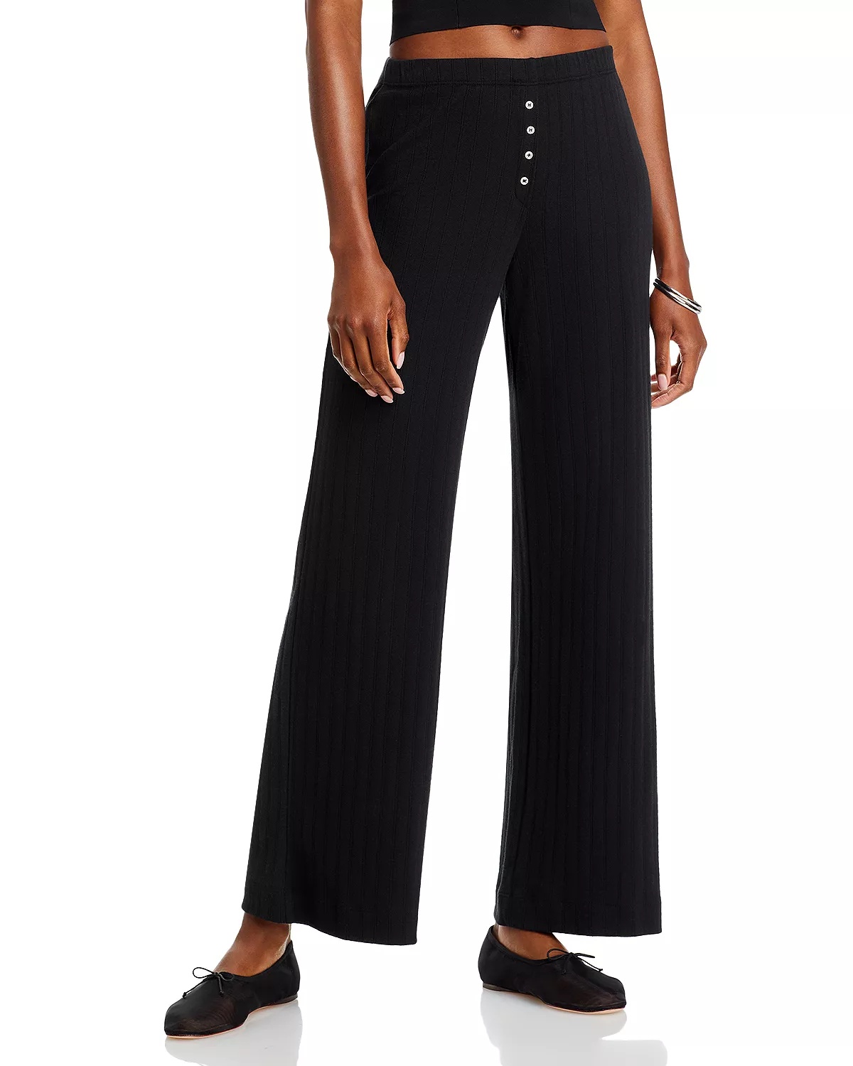 SIZE & FIT - Fits true to size, order your normal size - 11.25" rise, 31.25" inseam, based on a size small - Model measurements: 5'10" height, 33.5" bust, 23.5" waist, 34.5" hips, wearing a size small PRODUCT DETAILS - Banded waist - Pull-on style - Decorative buttons at front faux fly - Wide-leg silhouette - Allover pointelle knit - Made in USA Web ID: 5196512 MATERIAL & CARE - 100% cotton - Hand wash