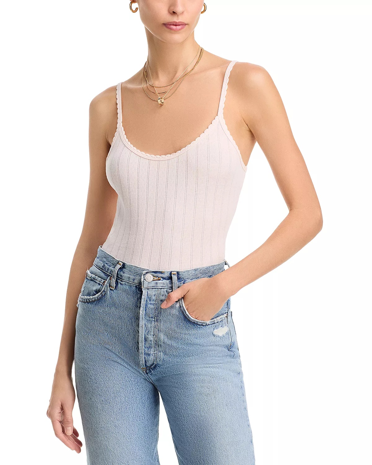 SIZE & FIT - Fits true to size, order your normal size - Model measurements: 5'9" height, wearing a size small PRODUCT DETAILS - Scoop neck - Sleeveless, fixed shoulder straps - Scalloped edge at neck and straps - Allover pointelle knit - Made in USA Web ID: 5196524 MATERIAL & CARE - 100% cotton - Hand wash