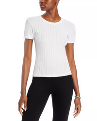 SIZE & FIT - Fits true to size, order your normal size - Designed for a slim fit - Approx. 21.5" long - Model measurements: 5'8" height, wearing a size small PRODUCT DETAILS - Crewneck - Short sleeves - Scalloped trim at neck and cuffs - Allover pointelle knit - Made in USA Web ID: 5196521 MATERIAL & CARE - 100% cotton - Hand wash
