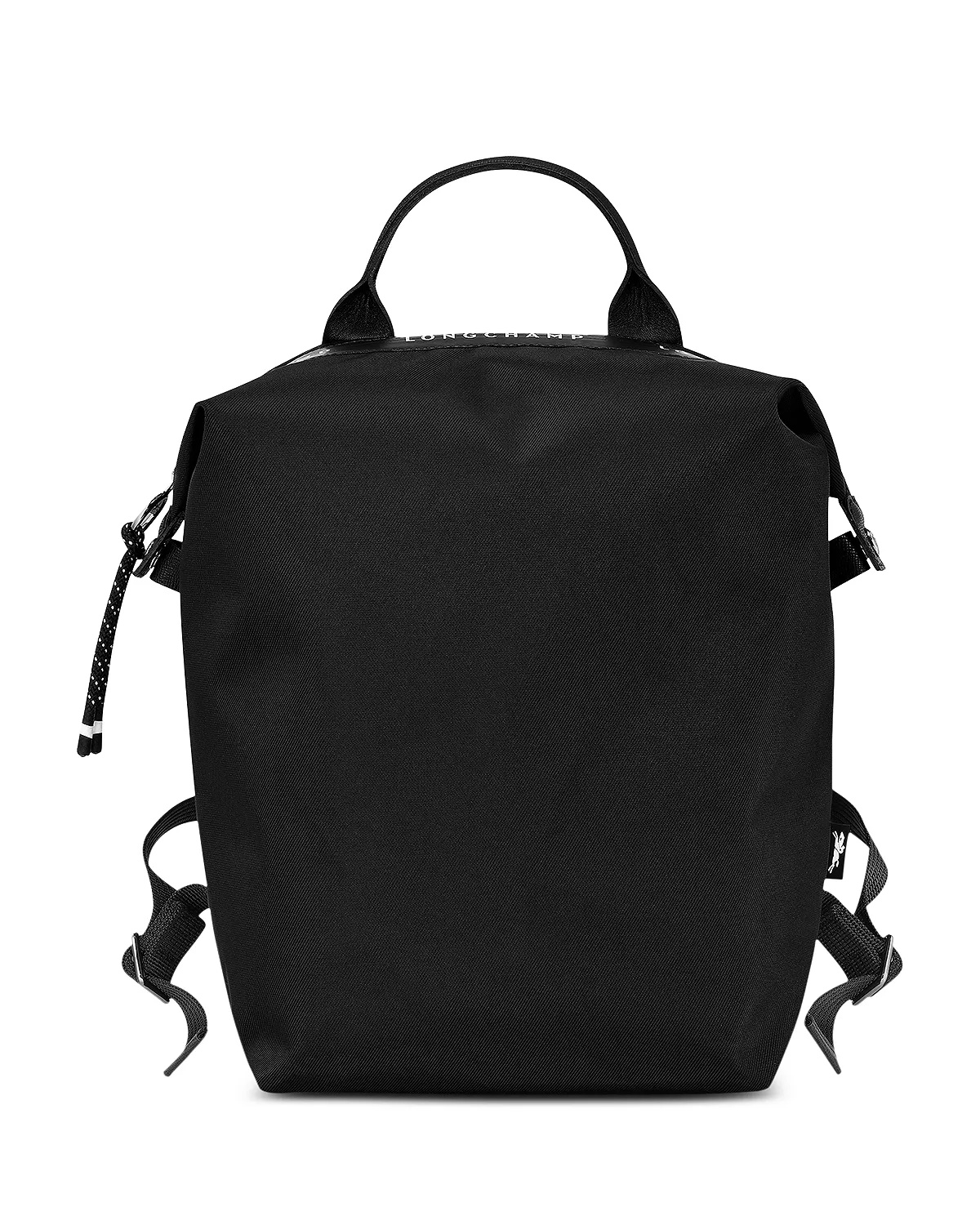PRODUCT DETAILS - Top handle, 2.8" drop - Adjustable backpack straps - Dimensions: 12.6"L x 5.5"W x 15"H - Zip closure with a black and white rope and the Longchamp label - One interior flat pocket, one exterior back zip pocket - Polyamide canvas; trims: leather - Imported Web ID: 4953600