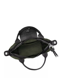 PRODUCT DETAILS - Adjustable removable crossbody strap, 21" drop - Double handles, 2.75" drop - Dimensions: 6.7"W x 4"D x 5.5"H - Zip closure - Two interior slip pockets - Leather trim details - Silver-tone hardware - Mannequin model measurements: 5'10" height, wearing a size 4 or small - Unlined - Polyamide; trim: leather - Imported Web ID: 4392208