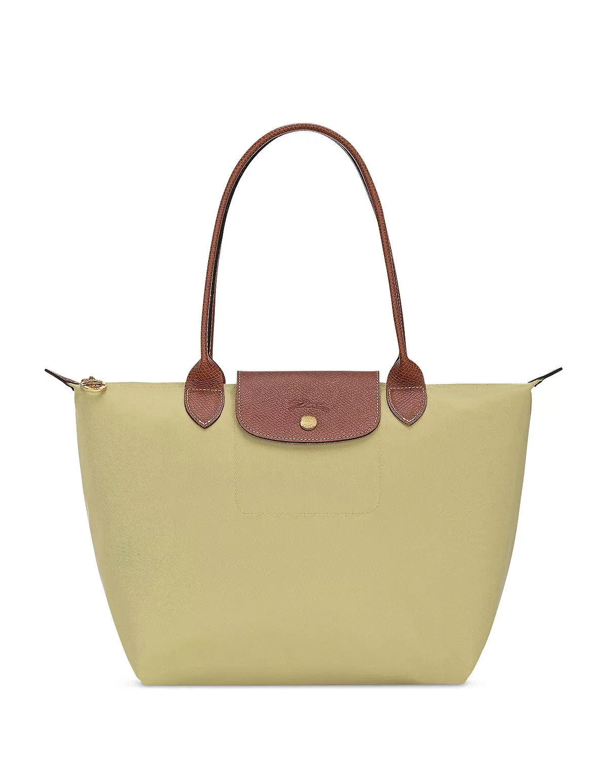 SIZE & FIT - French businessman and travel enthusiast Jean Cassegrain founded Longchamp in 1948 with a global vision of selling luxury leather goods. - Originally sold out of booths set up in airport terminals, the brand's structured bags, wallets, and passport holders soon entered boutiques worldwide. - Primarily manufactured in France and Italy from high-quality leather, Longchamp's handbag offerings include totes, satchels, backpacks, and mini bags. - A leader in innovative design, the brand was among the first to integrate nylon into its luggage designs, making for lighter bags and suitcases. - Inspired by origami, the brand's signature Le Pliage nylon shoulder bag is easy to carry and available in a range of shapes and colors. PRODUCT DETAILS - Double handles, 8" drop - Dimensions: 11"W x 6"D x 10.5"H - Snap flap and zip closure - Interior slip pocket - Foldable, packable design - Leather trim details - Signature emblem at front flap - Mannequin model measurements: 5'10" height, wearing a size 4 or small - Synthetic lining - Main: 70% recycled nylon/30% nylon with inner coating; trim: leather - Imported Web ID: 641312