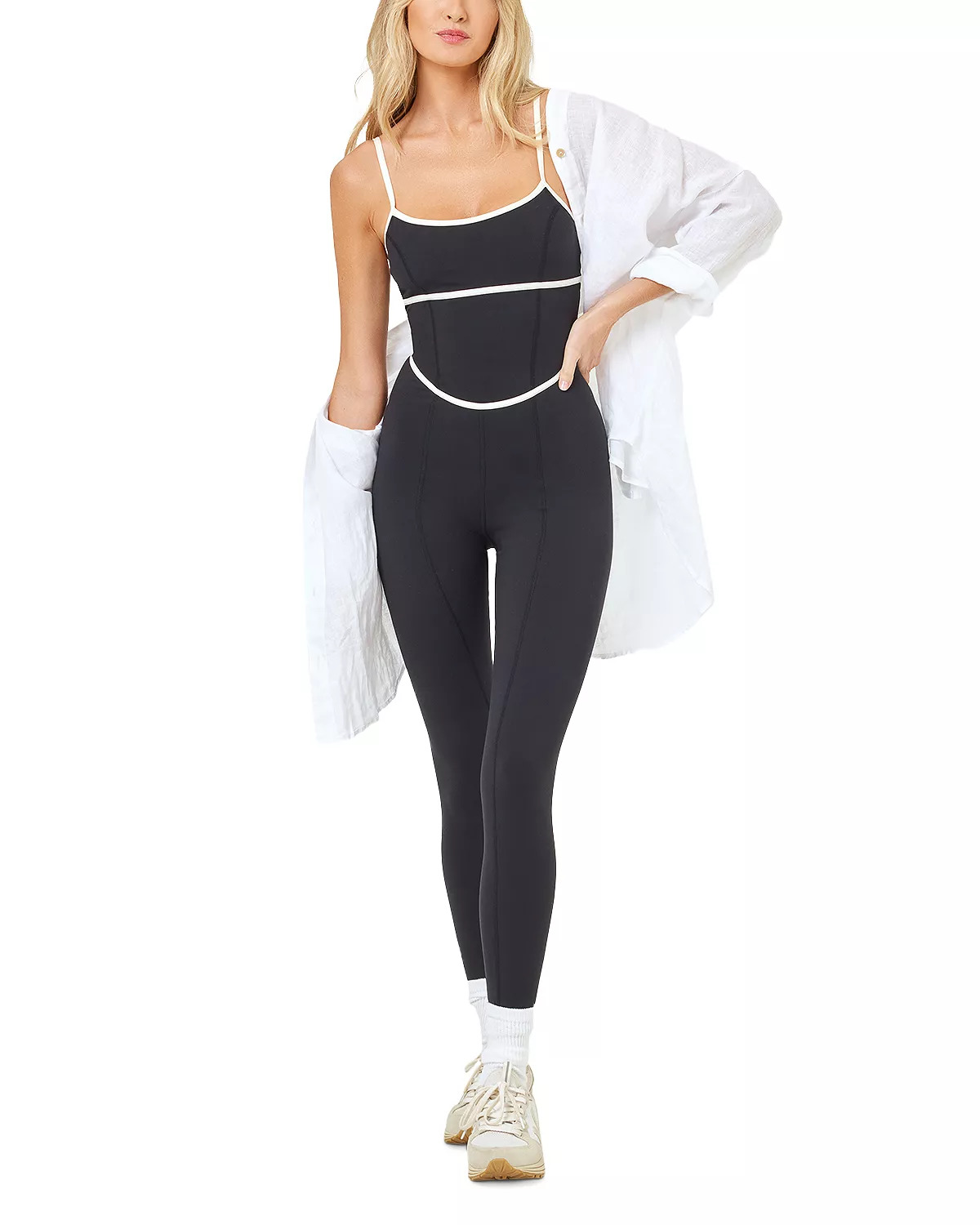 SIZE & FIT - Fits true to size, order your normal size - 8" rise, 27" inseam, 4" leg opening, based on a size small - Model measurements: 5'10" height, 33" bust, 25" waist, 35" hips, wearing a size small PRODUCT DETAILS - Scoop neck - Adjustable cross-back straps - Pull-on style - Contrast trim details - Imported Web ID: 5453487 MATERIAL & CARE - Polyester/spandex - Hand wash