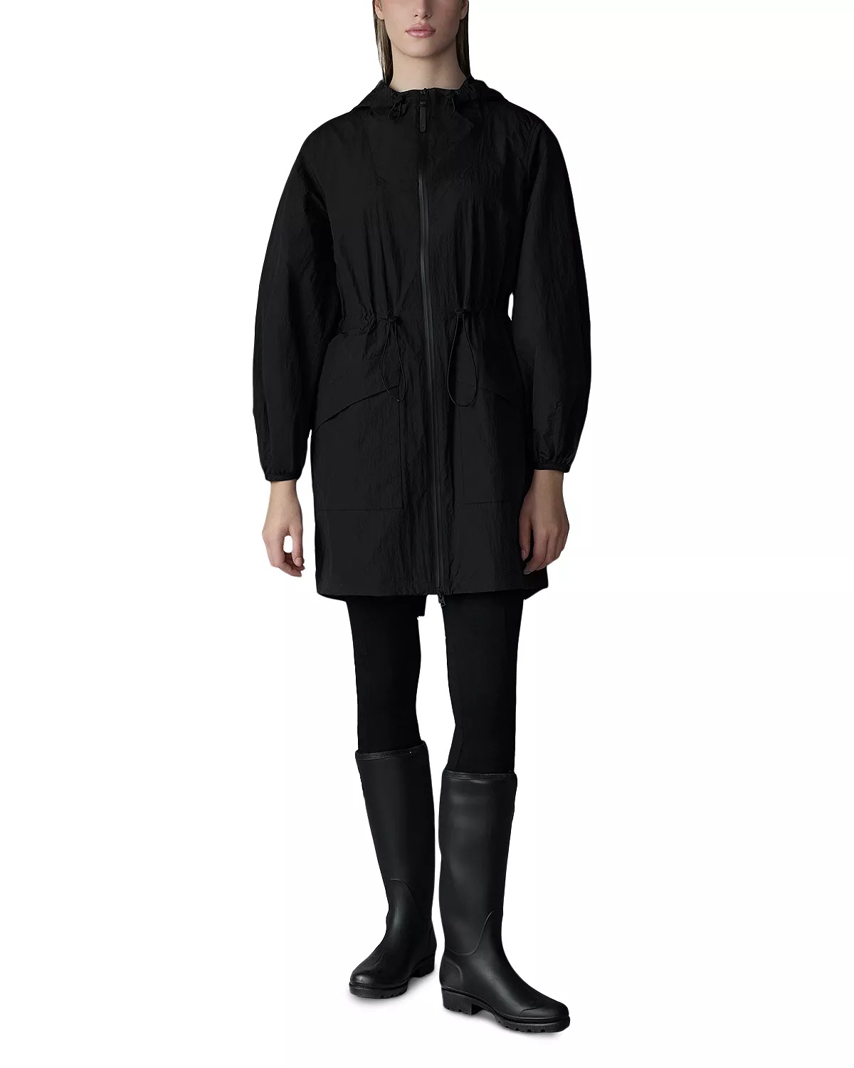 SIZE & FIT - Fits true to size, order your normal size - Approx. 37.5" from back of neck to hem, based on a size small - Model measurements: 5'10" height, 33" bust, 25" waist, 35" hips, wearing a size small PRODUCT DETAILS - Packable as a shoulder bag when not in use - Water resistant - Attached drawcord hood - Long sleeves with binding at cuffs - Front zip closure - Drawcord waist - Front patch pockets - Drawcord at bottom hem - Vent at back hem - Imported Web ID: 5429302 MATERIAL & CARE - 100% nylon - Machine wash