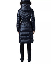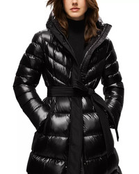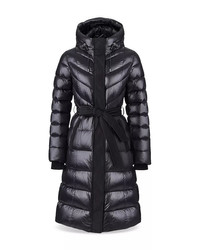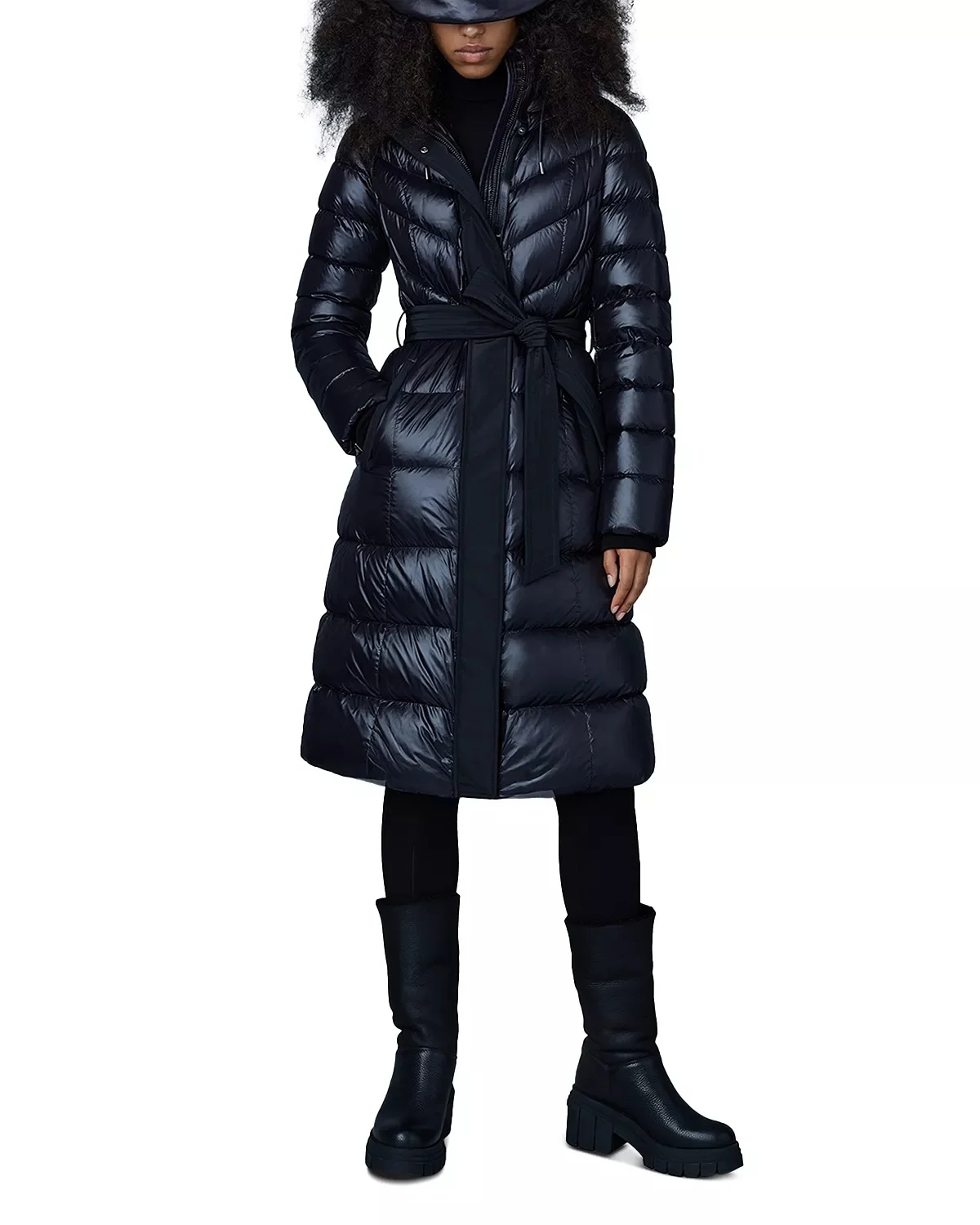 SIZE & FIT - Fits true to size, order your normal size - Designed for a fitted silhouette PRODUCT DETAILS - Fixed drawstring hood with tonal logo patch - Long sleeves, recessed knit cuffs - Tonal logo patch at left sleeve - Front concealed zip closure with contrast snap storm placket - Contrast removable self-tie sash, belt loops - Two insulated hip concealed-zip pockets, one interior pocket - Chevron quilting at bodice, channel quilting at sleeves and bottom - Water-repellent, water-resistant shell - 800 fill power, rated to -15°C - Lined - Imported Web ID: 4758949 MATERIAL & CARE - Shell: 100% recycled nylon; contrast: 100% recycled polyester; combo: 70% polyamide/22% polyester/8% elastane; lining: 100% recycled nylon; fill: 90% white duck down/10% feathers - Machine wash