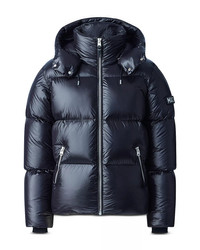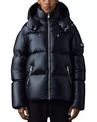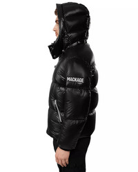 PRODUCT DETAILS - Fits true to size, order your normal size - Designed for a classic fit - Removable hood with adjustable storm visor and drawcord - Full-zip closure - Two hand zip pockets - Logo patch at left sleeve - Bungee adjuster at hem - Storm cuffs - Mackage is committed to sustainability and actively challenges themselves to create products that are better for people and the planet. - Imported Web ID: 3802905 MATERIAL & CARE - Shell: nylon; leather trim: lamb leather; lining: nylon; filling: duck down/feathers; rib knit: wool/acrylic/spandex; trim polyurethane - Machine wash