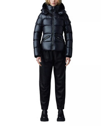 PRODUCT DETAILS - Fits true to size, order your normal size - Model measurements: 5'10" height, 33.5" bust, 23.5" waist, 34.5" hips, wearing a size small - Snap-detachable hood, adjustable visor with drawcord - Long sleeves, ribbed storm cuffs with thumbhole - Front zip closure - Two front zip pockets, interior zip pocket - Logo patch at left sleeve - Filled, lined - Mackage is committed to sustainability and actively challenges themselves to create products that are better for people and the planet. - Features ethically sourced down independently certified to the Responsible Down Standard (RDS) - Imported Web ID: 4164047 MATERIAL & CARE - Shell & lining: 100% nylon; ribbing: 100% spandex; fill: 90% duck down/10% feathers - Machine wash