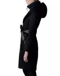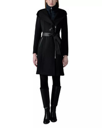 SIZE & FIT - Fits true to size, order your normal size - Designed for a fitted look - Model measurements: 5'10" height, 33" bust, 25" waist, 35" hips, wearing a size small PRODUCT DETAILS - Fixed shawl hood - Stand collar - Removable down-filled bib - Long sleeves - Asymmetric front zip closure - Self-tie leather belt - Leather welt pockets at waist - Lined - Imported Web ID: 5196558 MATERIAL & CARE - Shell: 100% wool; combo shell: 82% recycled nylon/18% spandex; trim: leather; lining: 52% polyester/48% viscose; fill: 90% duck down/10% duck feathers - Dry clean