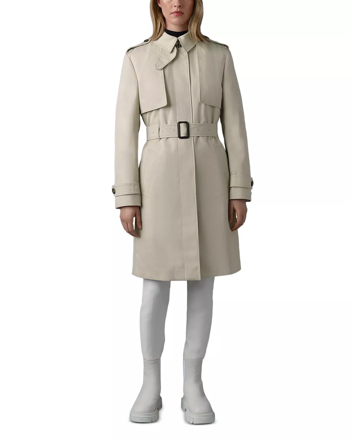 SIZE & FIT - Fits true to size, order your normal size - Model measurements: 5'10" height, 33" bust, 25" waist, 35" hips, wearing a size small PRODUCT DETAILS - Point collar with hook-and-eye closure - Removable throat latch with button closure - Button epaulets - Long sleeves, adjustable button-tab cuffs - Chest storm flaps - Front concealed button placket - Belt loops, removable belt with leather-buckle closure - Hip welt pockets, tonal logo embroidery at left pocket - Back storm flap - Back vent - Water-repellent, wind-resistant shell - Removable quilted bib liner with front button closures - Partially lined - Imported Web ID: 5028750 MATERIAL & CARE - Shell: 65% polyester/35% cotton; combo & fill: 100% polyester; lining: 100% viscose - Professional leather clean