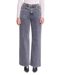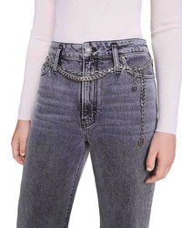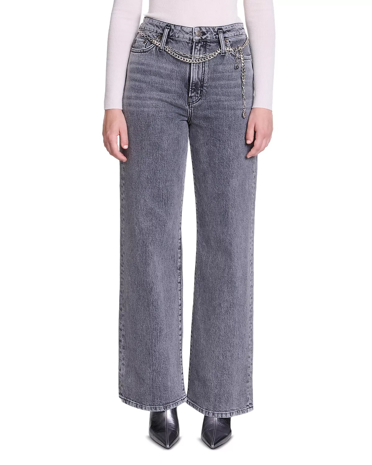 SIZE & FIT - Fits true to size, order your normal size - Rise: 10" - Inseam: 32" - All measurements based on a size 36 FR/4 US - Model measurements: 5'10" height, 33.5" bust, 23.5" waist, 34.5" hips, wearing a size 36 FR/4 US PRODUCT DETAILS - Chain belt at waist - Zip fly with button closure, five-pocket silhouette - Tonal stitching, silver-tone hardware, belt loops - Faded, whiskered - Wide-leg silhouette - Made in Turkey Web ID: 5190782 MATERIAL & CARE - Main: 99% cotton/1% elastane; pocket lining: 67% polyester/33% cotton; jacron: leather - Machine wash or dry clean