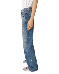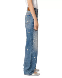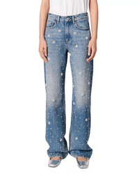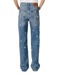 SIZE & FIT - Fits true to size, order your normal size - High rise: 10" - Long inseam: 33.5" - 1/2 leg opening: 9.7" - All measurements based on a size 36 PRODUCT DETAILS - Zip fly with button closure, five-pocket silhouette - Contrast stitching, silver-tone logo hardware, belt loops - Wide-leg silhouette - All-over embroidered beaded flowers and rhinestone - Made in Turkey Web ID: 5384703 MATERIAL & CARE - 100% cotton; pocket lining: 67% polyester/33% cotton; jacron: leather - Machine wash