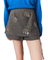 SIZE & FIT - Fits true to size, order your normal size - Designed for a short, slightly flared cut - 12.4" clothing height, 27.6" waist, 38" hip circumference, 20.7" half bottom width, 14.1" rise, 1.4" inseam - Model is wearing a size 36 PRODUCT DETAILS - Tone-on-tone sequin embroidered patches - Side zip closure - Lined - Please note that this merchandise will be delivered with a branded return tag attached. If the branded return tag is removed, the merchandise cannot be returned. - Imported Web ID: 5742455 MATERIAL & CARE - Shell: 86% polyester/14% viscose; lining: 100% viscose; inner: 100% polyester - Dry clean
