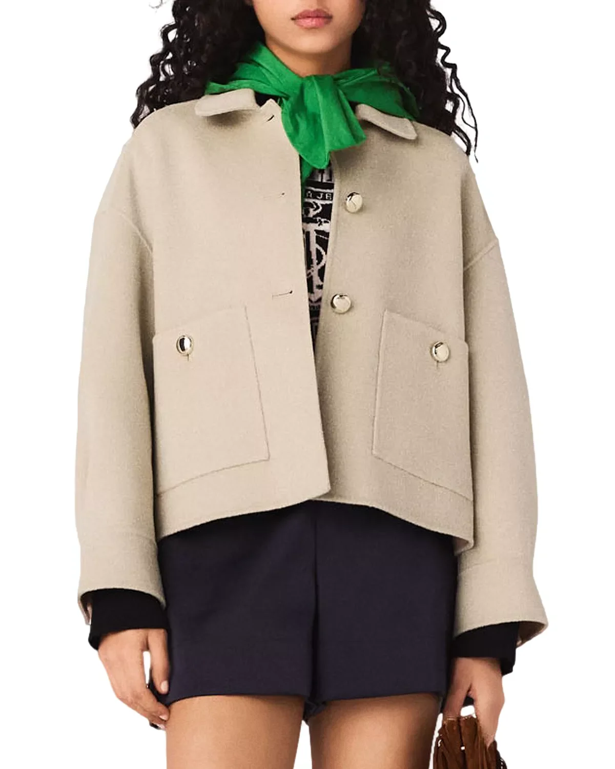 SIZE & FIT - Fits true to size, order your normal size - Designed for a boxy fit with A-line back, hits at waist PRODUCT DETAILS - Classic collar - Long sleeves, buttoned cuffs - Front dome-button closures - Two front button-patch pockets - Pleated back - Imported Web ID: 5855411 MATERIAL & CARE - 70% wool/26% polyester/4% polyamide - Dry clean