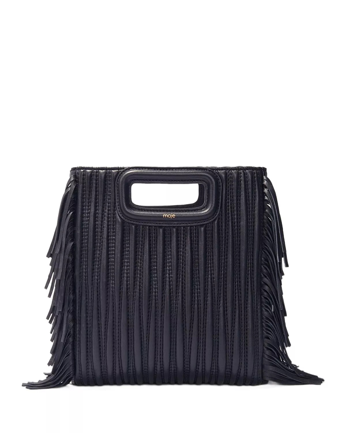 PRODUCT DETAILS - Integral top handles - Removable, adjustable crossbody strap, 20.8" drop - Dimensions: 7.9"L x 2.8"W x 9.1"H - Tab with magnetic closure - Fringed sides - Quilted line texture - Lined - Main: leather; lining: 100% polyester - Imported Web ID: 5384630