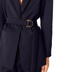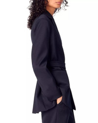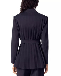 SIZE & FIT - Fits true to size, order your normal size - Model measurements: 5'10" height, 33.5" bust, 23.5" waist, 34.5" hips, wearing a Maje size 36 PRODUCT DETAILS - Satin peak lapels - Long sleeves - Open-front style - Adjustable belt at waist - Center back pleat - Please note that this merchandise will be delivered with a branded return tag attached. If the branded return tag is removed, the merchandise cannot be returned. - Imported Web ID: 5384926 MATERIAL & CARE - 54% polyester/44% virgin wool/2% elastane; lining: 100% viscose - Dry clean