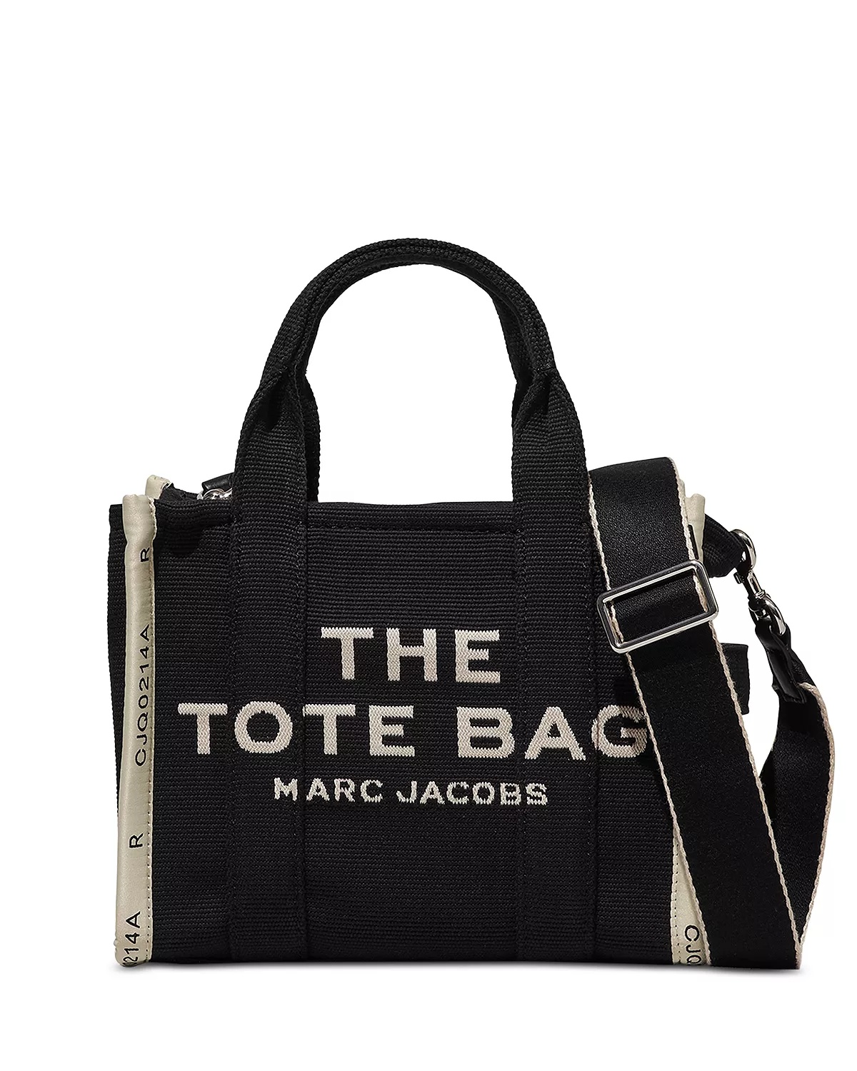 PRODUCT DETAILS - Double handles, 4.33" drop - Adjustable, removable crossbody strap, 26.97" drop - Dimensions: 10.24"W x 4.92"D x 8.27"H - Zip closure - "The Tote Bag Marc Jacobs" printed on the exterior - Cotton/polyester - Imported Web ID: 4178347