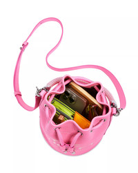 PRODUCT DETAILS - Rope top handle, 5.12" drop - Adjustable removable shoulder strap, 22" - Dimensions: 6.23"W x 6.3"D x 8.27"H - Drawstring closure - Interior card slot - Contrast interior - Debossed logo design - Leather - Imported Web ID: 5596165