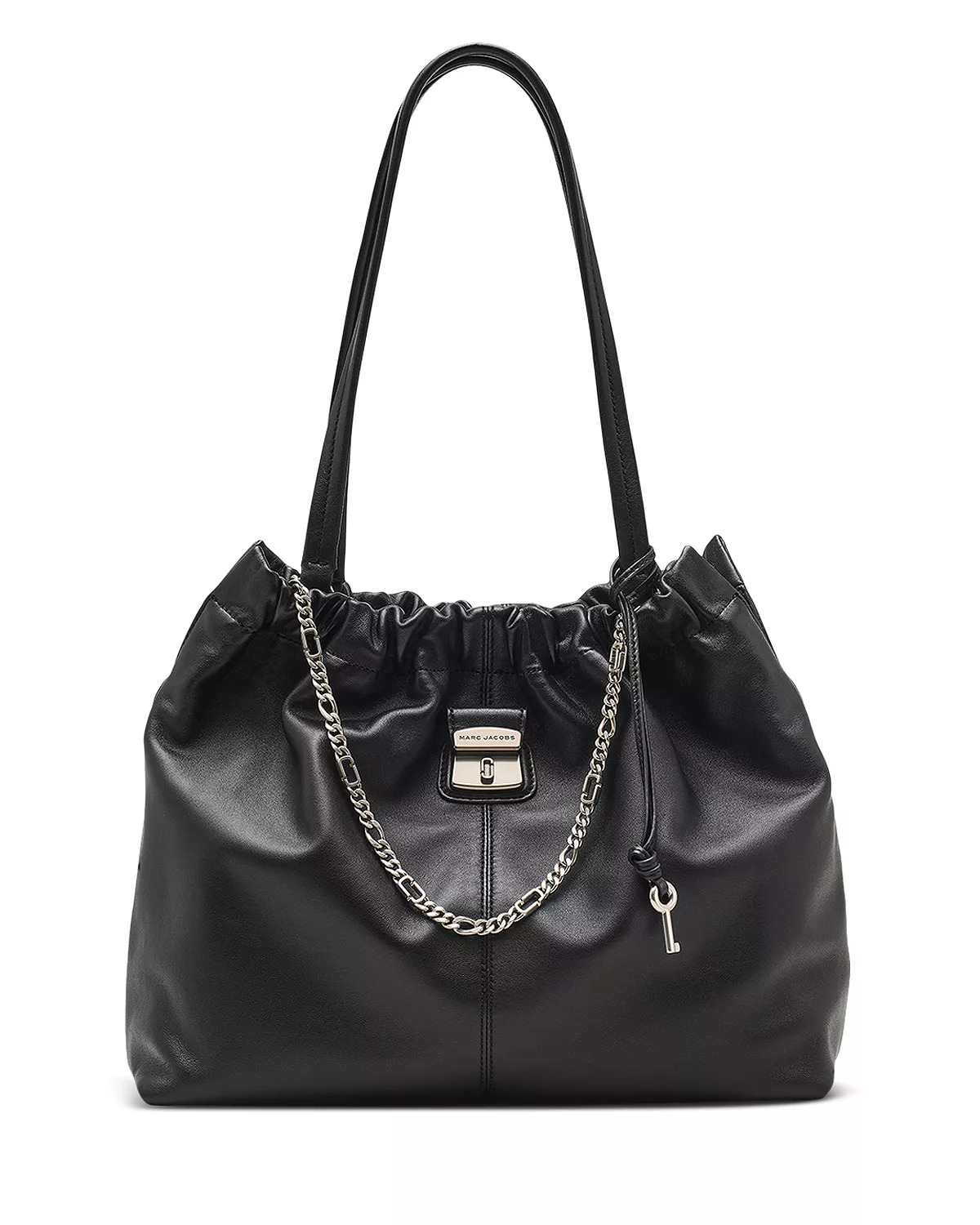 PRODUCT DETAILS - Shoulder strap, 10.8" drop - Signature chain handle accent - Dimensions: 10.8"W x 5.9"D x 5.9"H - Gathered top with magnetic snap closure - Interior zip pocket - Hanging key charm - Based on the archival "Dreamy Logo" collection - Lined - Main: leather; lining: 100% polyester - Imported Web ID: 5682648