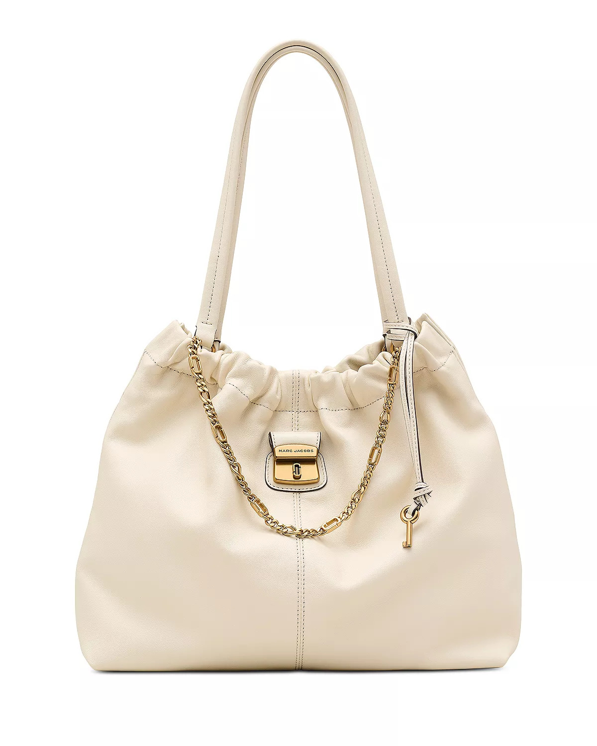 PRODUCT DETAILS - Shoulder strap, 10.8" drop - Signature chain handle accent - Dimensions: 10.8"W x 5.9"D x 5.9"H - Gathered top with magnetic snap closure - Interior zip pocket - Hanging key charm - Based on the archival "Dreamy Logo" collection - Lined - Main: leather; lining: 100% polyester - Imported Web ID: 5682648