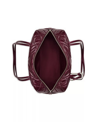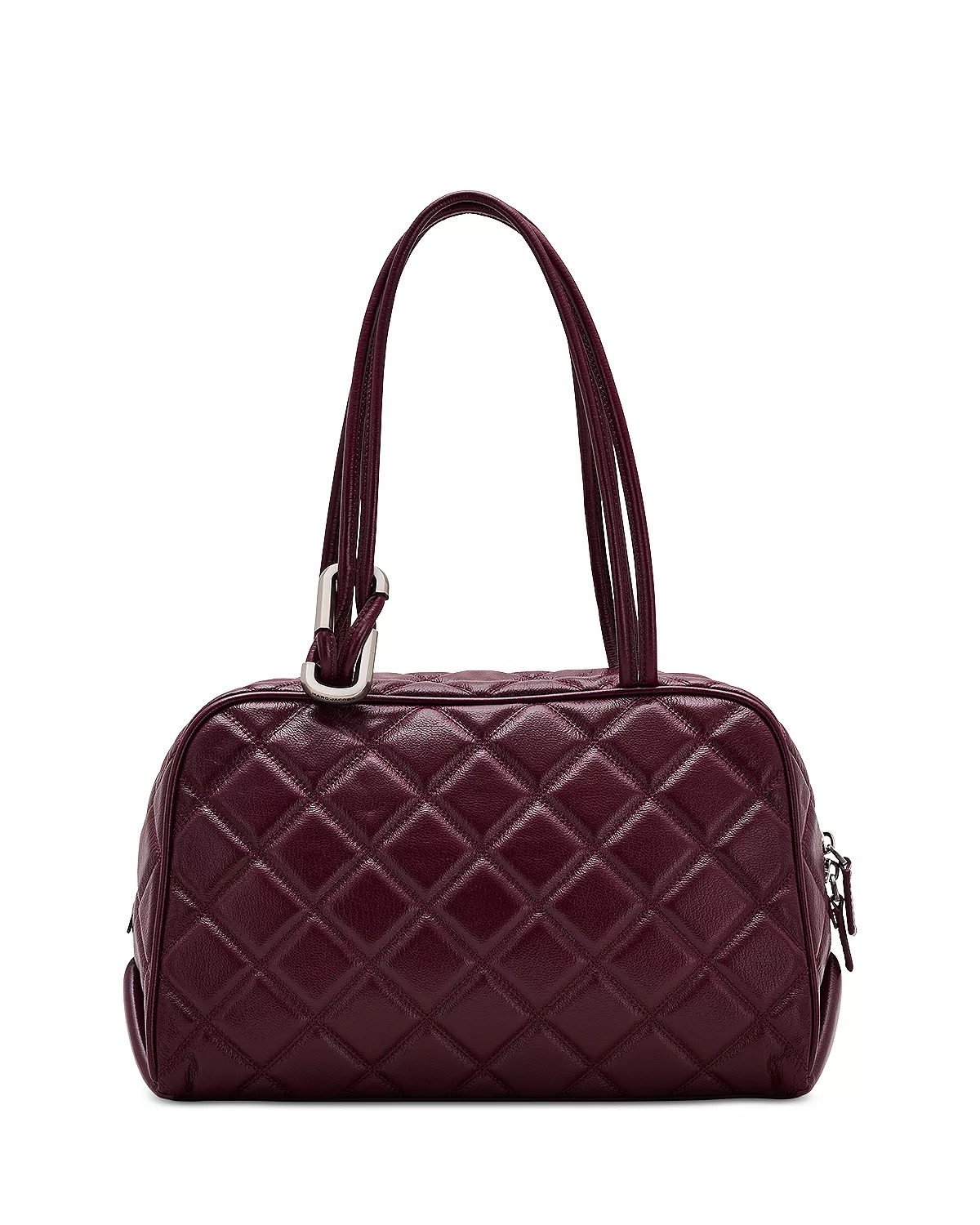 PRODUCT DETAILS - Tubular handles, 9.7" drop - Dimensions: 13.4"W x 5.5"D x 8.5"H - Dual zip closure - Two slip pockets & one zip pocket - Quilted diamond pattern - Logo detail on front - Lined - Main: leather; lining: 100% polyester - Imported Web ID: 5682662