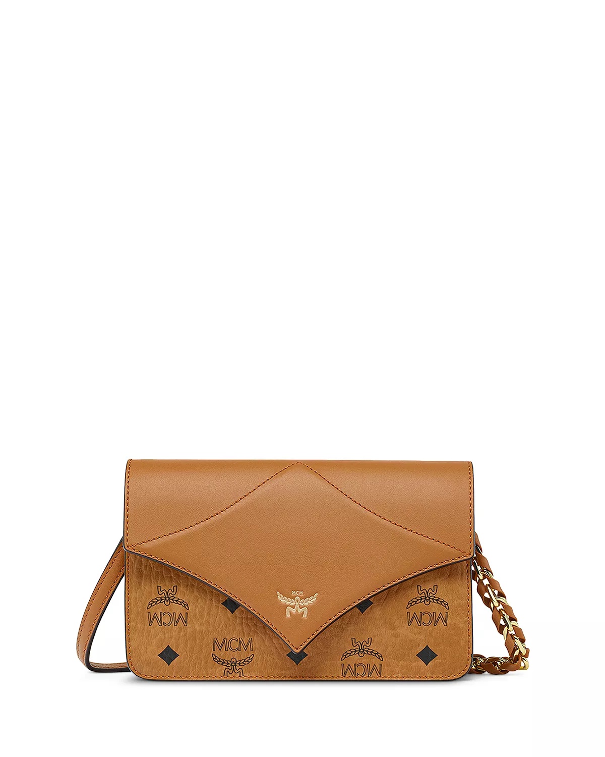 SIZE & FIT - Founded in 1976 by Michael Cromer, MCM (Modern Creation Munich) creates luxury leather goods featuring its trademark Visetos motif of laurel leaves, ribbons, and diamonds inspired by the Bavarian flag. - Today MCM''s beloved accessories are coveted for their monogrammed, streetwear-inspired designs. Along with handbags, backpacks, and wallets, product offerings include fragrances and footwear. - MCM collaborates with like-minded designers and artists around the world to produce innovative styles in keeping with its bold yet sophisticated aesthetic. PRODUCT DETAILS - Removable adjustable shoulder strap, 23.4" drop - Dimensions: 7.8"W x 2"D x 4.9"H - Magnetic snap flap closure - Two interior card slots and one zip pocket - Signature laurel logo print - Gold-tone hardware - Lined - Synthetic/leather - Imported Web ID: 4903295