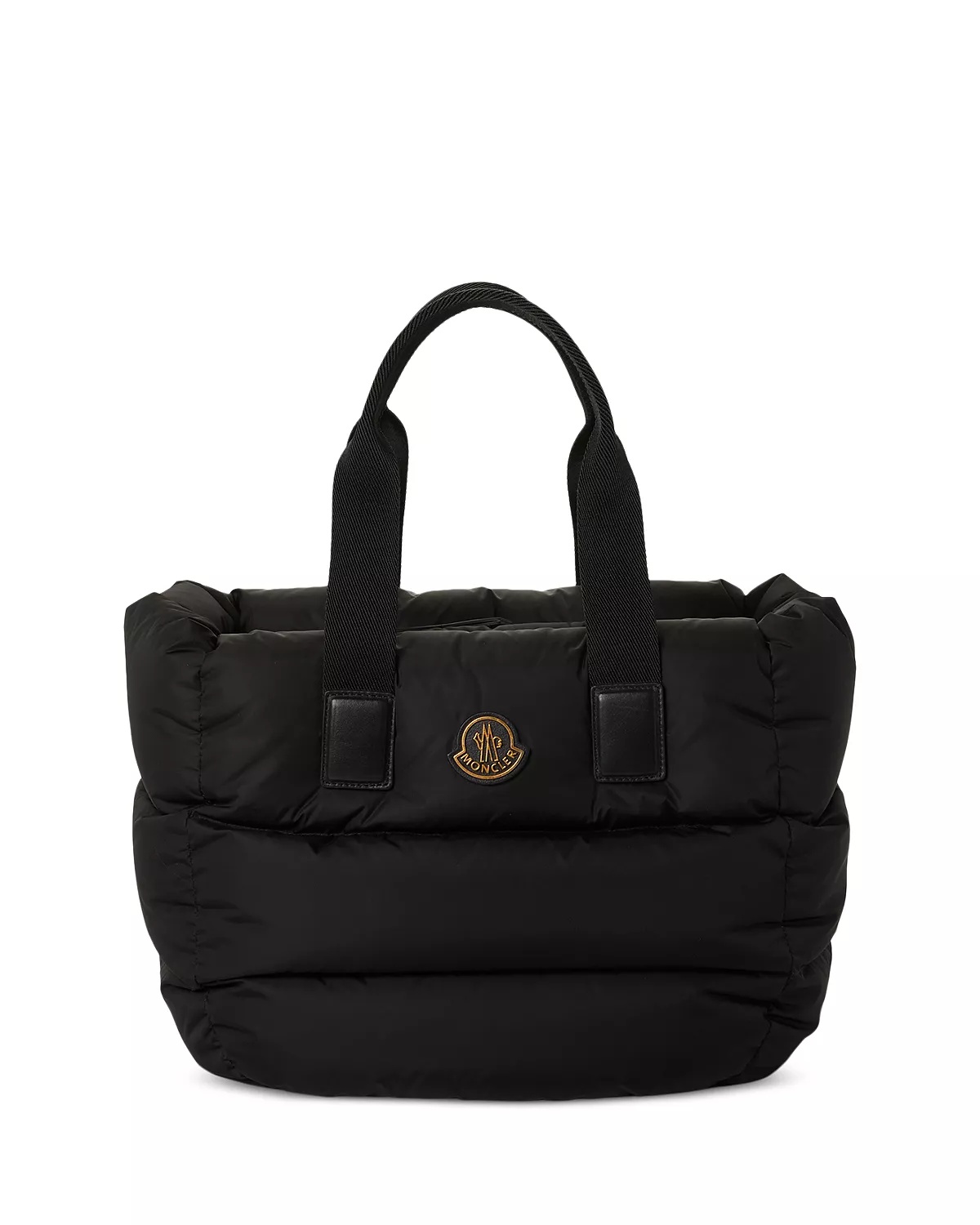 PRODUCT DETAILS - Top handles - Dimensions: 13"L x 8.7"D x 11.8"H - Zip closure - Interior slip pocket - Lined - 100% nylon; lining: 97% cotton/3% spandex; padding: 90% down/10% feathers; trim: 100% leather - Made in Italy Web ID: 4570240
