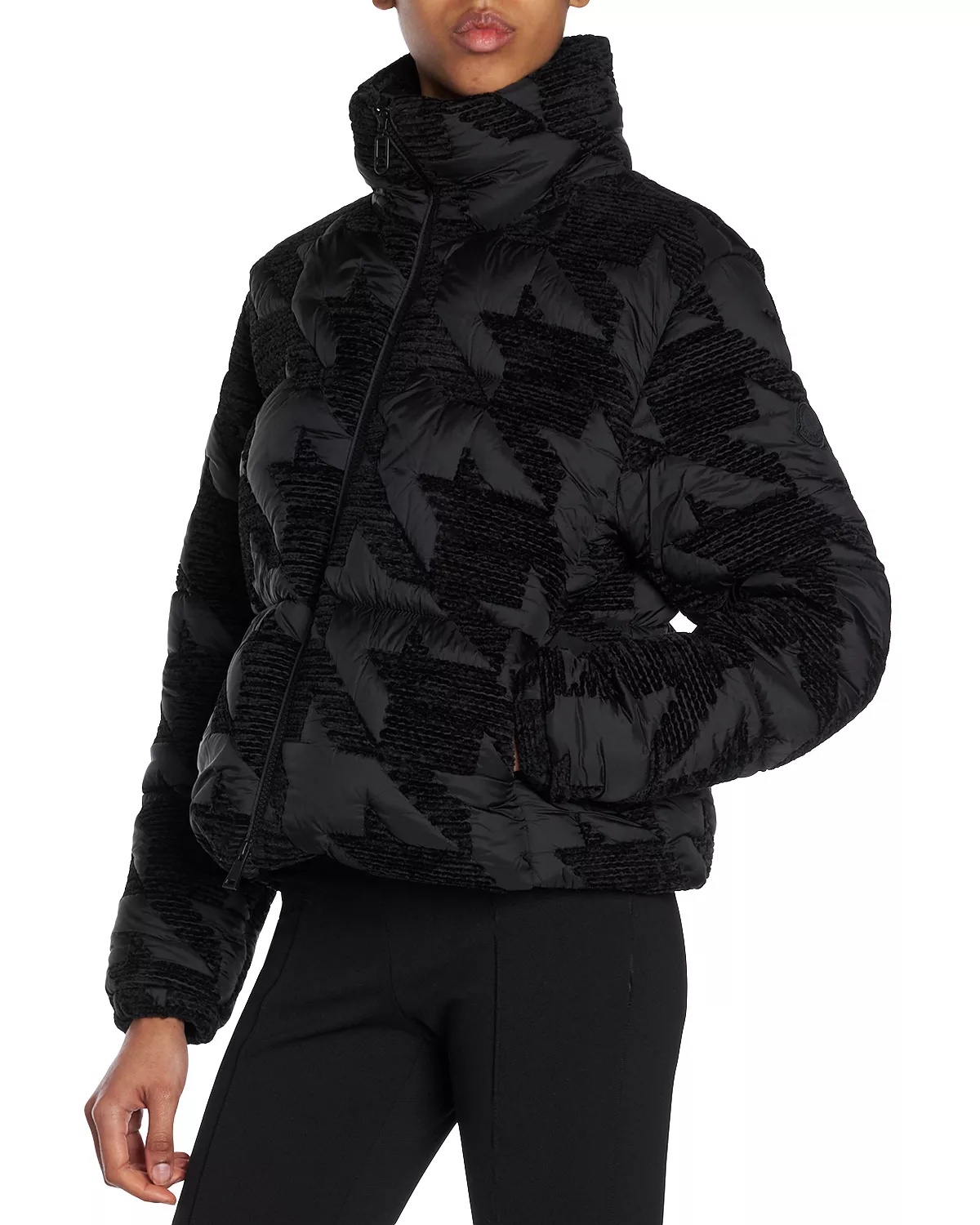 SIZE & FIT - Fits true to size, order your normal size - Model measurements: 5'10" height, 33.5" bust, 23.5" waist, 34.5" hips, wearing a size 1 or small PRODUCT DETAILS - Mock neck - Front zipper closure - Long sleeves with elasticized cuffs - Two side slant pockets - Lined - Houndstooth embroidery throughout - Quilted - Imported Web ID: 5133979 MATERIAL & CARE - 86% polyester/14% polyamide; lining: 100% polyester; fill: 90% down/10% feathers - Hand wash or dry clean