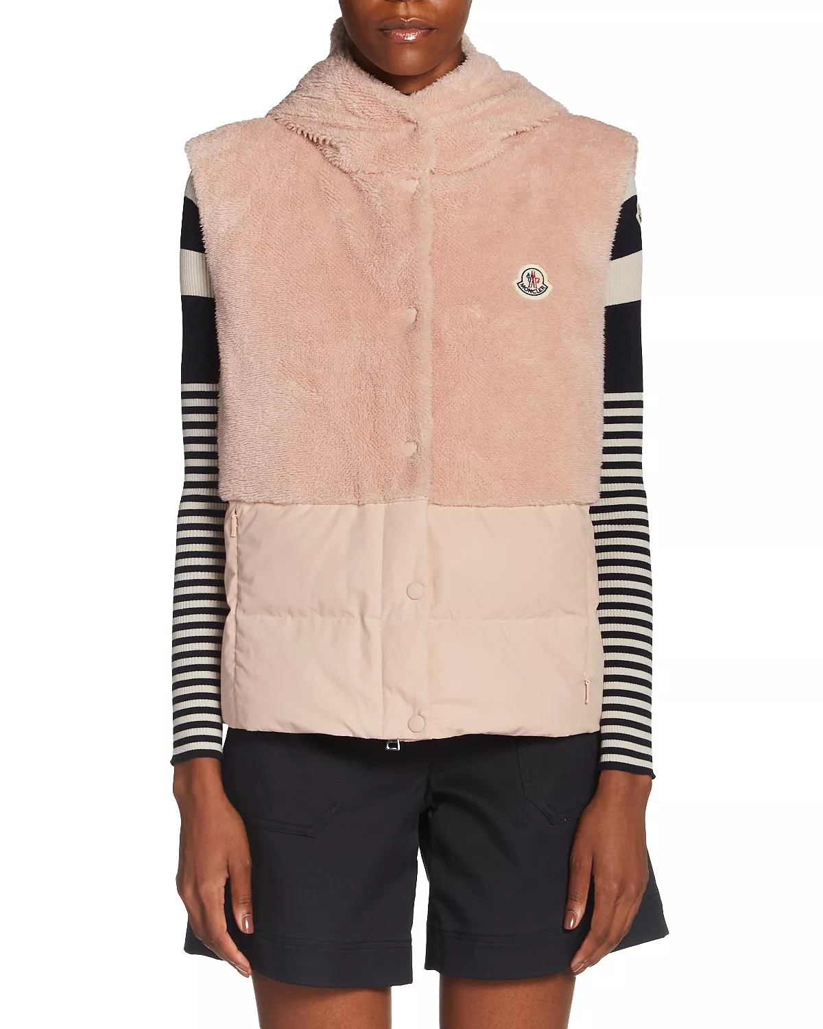 SIZE & FIT - Fits true to size, order your normal size - Model measurements: 5'10" height, 33.5" bust, 23.5" waist, 34.5" hips, wearing a size small PRODUCT DETAILS - Attached hood - Sleeveless - Front snap closures - Two front zipper pockets - Faux-fur hood and upper body, quilted lower body - Imported Web ID: 5372552 MATERIAL & CARE - Shell: 100% polyester; lower body: 100% cotton; lining and hood lining: 50% polyamide/50% nylon; fill: 100% polyester - Dry clean