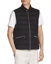 SIZE & FIT - Fits true to size, order your normal size - Designed for a regular fit PRODUCT DETAILS - Band collar with snap-tab closure - Full-zip front closure - Sleeveless - Two front zip hand pockets - Allover down-filled channel quilting - Lined - Imported Web ID: 4946470 MATERIAL & CARE - Shell: 55% nylon/45% cashmere; tag: leather; lining: 100% polyester; fill: 90% down/10% feathers - Dry clean