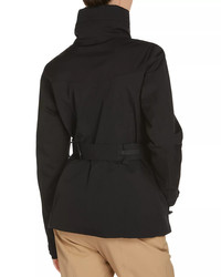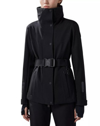 SIZE & FIT - Fits true to size, order your normal size - Model measurements: 5'10" height, 33.5" bust, 23.5" waist, 34.5" hips PRODUCT DETAILS - Stand collar - Attached packable hood - Zipper with button front closures - Belted at waist - Long sleeves with thumbholes - Zipper pockets at hips and sleeves - Logo at right sleeve - Lined - Imported Web ID: 4761693 MATERIAL & CARE - Shell: 17% elastane/83% polyamide; base fabric: 87% polyamide/13% elastane; hood: 50% polyamide/50% nylon; lining: 92% polyester/8% elastane; lower lining: 50% polyamide/50% nylon; hood lining: 50% polyamide/50% nylon; filling: 100% polyester - Machine wash
