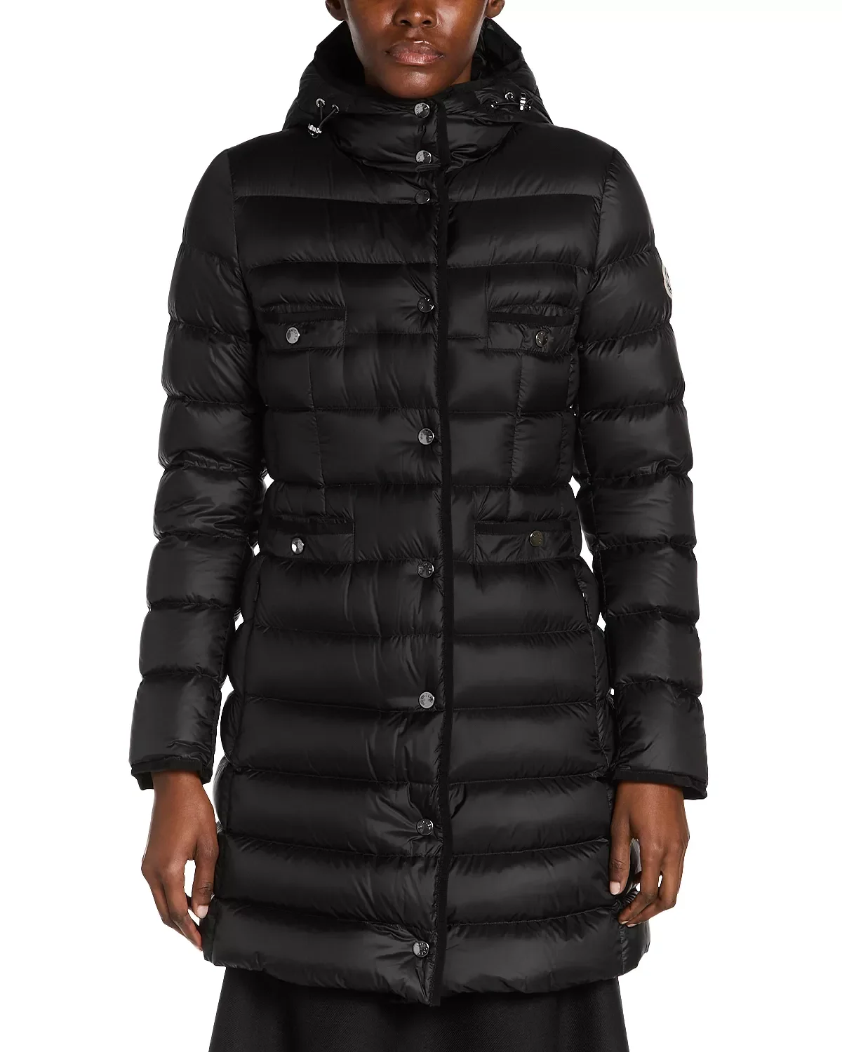 SIZE & FIT - Fits true to size, order your normal size - Designed to hit at mid-thigh - Moncler size conversion: 0=XS; 1=S; 2=M; 3=M/L; 4=L; 5=XL PRODUCT DETAILS - Attached hood with drawstring - Snap closure at front - Long sleeves - Flap pockets at chest - Logo at left sleeve - Button trim pocket at chest and front - Slant pockets at hips - Imported Web ID: 5565929 MATERIAL & CARE - Shell: 100% polyamide; lining: 100% polyamide; hood lining: 100% polyamide; fill: 90% down/10% feathers - Hand wash