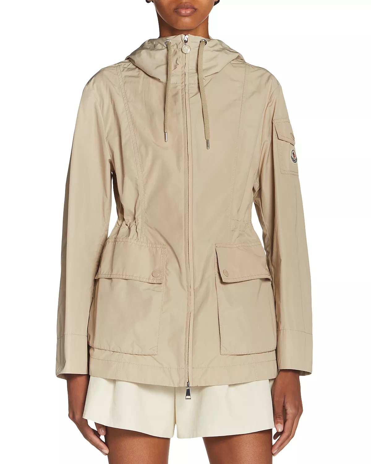 SIZE & FIT - Order your normal size or consider ordering next size up for a looser look - Designed for a slim fit - Model measurements: 5'10" height, 33" bust, 25" waist, 35" hips, wearing a size 1/small PRODUCT DETAILS - Attached hood - Front zipper closure - Long sleeves - Cinched waist - Two flap pockets at hips; flap pocket at upper sleeve - Logo patch at sleeve pocket - Made in Italy Web ID: 5379331 MATERIAL & CARE - 60% polyester/40% cotton; hood lining: 60% polyester/40% cotton - Machine wash or dry clean