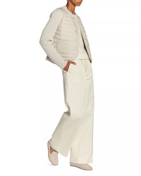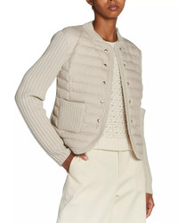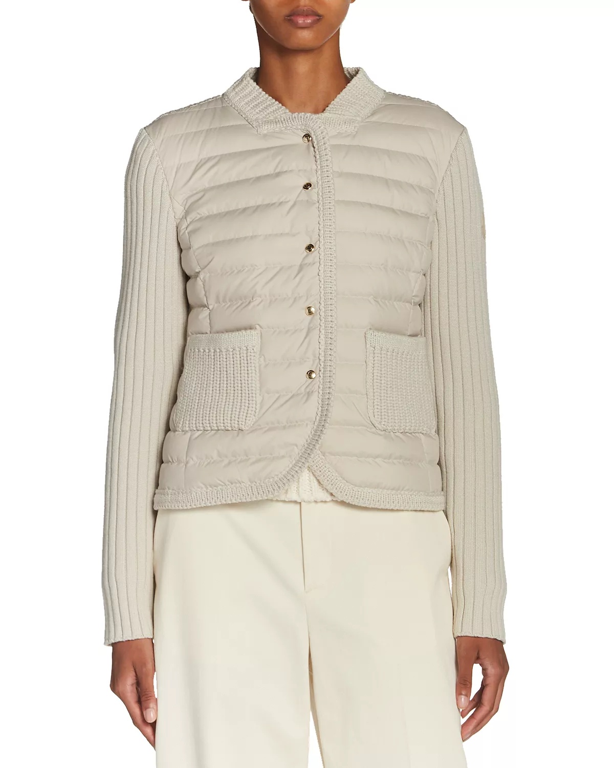 SIZE & FIT - Fits true to size, order your normal size - Designed to hit at waist - Model measurements: 5'10" height, 33.5" bust, 23.5" waist, 34.5" hips, wearing a size small PRODUCT DETAILS - Knit stand collar - Long rib-knit sleeves - Front snap closures - Two front knit patch pockets - Quilted bodice - Imported Web ID: 5372579 MATERIAL & CARE - Main: 100% polyester; leather exterior: leather; sleeves: 100% wool; front lining: 100% polyester - Dry clean