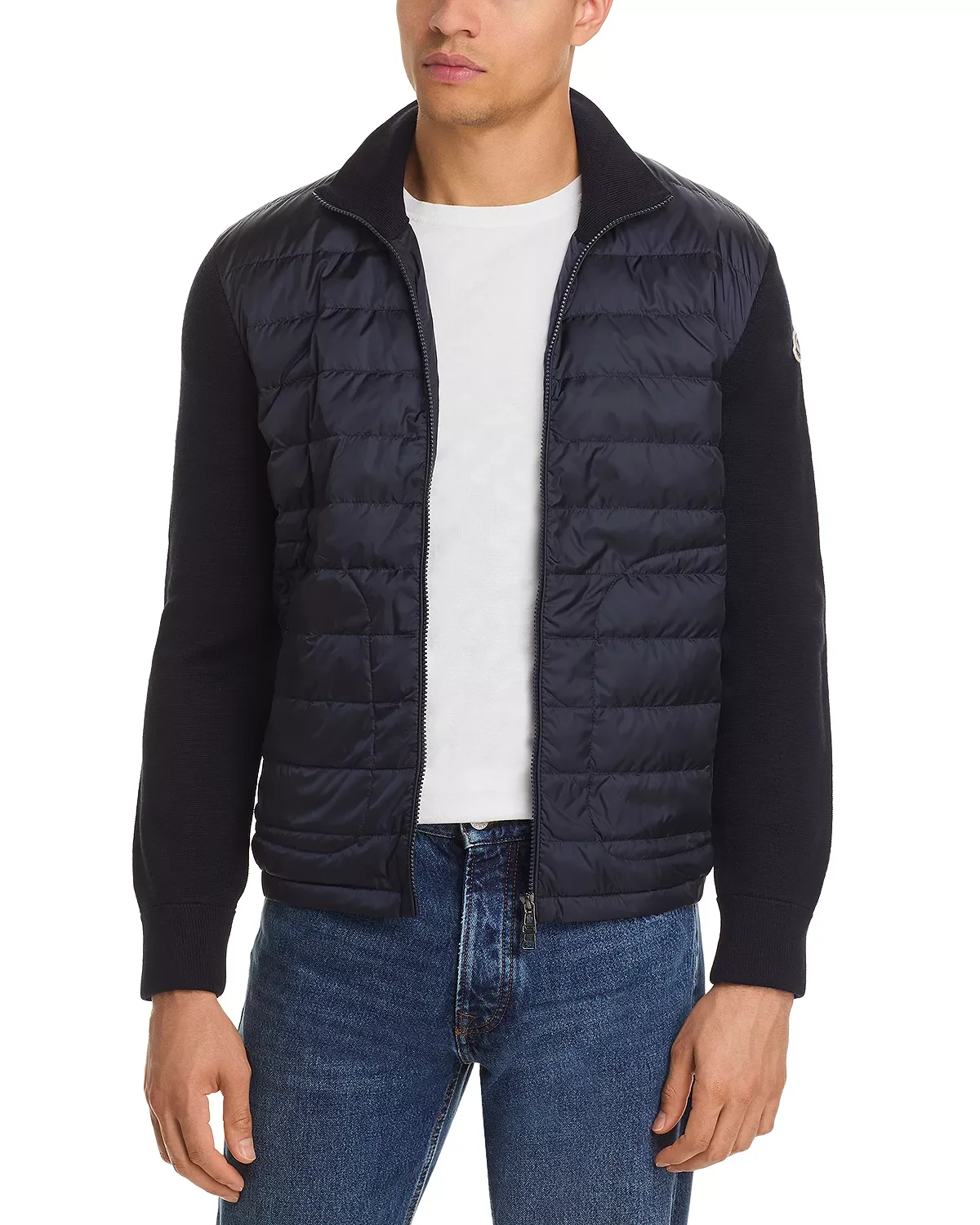 SIZE & FIT - Fits true to size, order your normal size - Designed for a regular fit - Model measurements: 6'2" height, 38" chest, 30" waist, 34" inseam, wearing a size medium PRODUCT DETAILS - Stand collar - Long sleeves - Front zip closure - Down-filled nylon front; knit combo - Two side zip pockets - Logo patch at left shoulder - Imported Web ID: 5556207 MATERIAL & CARE - Outer front: 100% polyamide/nylon; outer knit: 50% acrylic/50% virgin wool; fill: 90% down/10% feathers - Hand wash or dry clean
