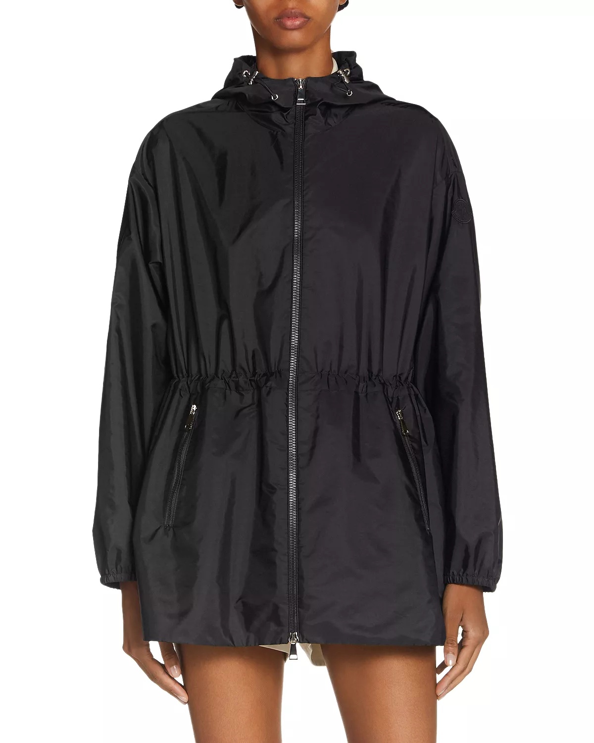 SIZE & FIT - Runs true to size; order your normal size - Designed for a slim fit - Model measurements: 5'10" height, 33" bust, 25" waist, 35" hips, wearing a size 1/small PRODUCT DETAILS - Attached hood with drawcord - Front zipper closure - Long sleeves with elasticized cuffs - Drawcord waist - Lined - Tiered hem - Imported Web ID: 5379330 MATERIAL & CARE - 100% nylon; lower lining: 100% nylon; hood lining: 100% nylon - Machine wash or dry clean